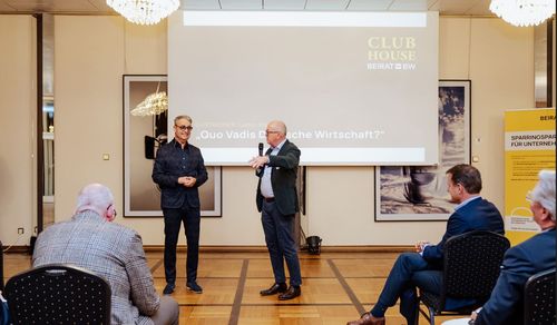 Im Rahmen unseres Veranstaltungsformats Beirat-BW 𝘾𝙡𝙪𝙗𝙝𝙤𝙪𝙨𝙚 hatten wir am 19.03.2025 rund 170 geladene Unternehmerinnen und Unternehmer, Gesellschafterinnen und Gesellschafter aus dem Mittelstand zu Gast.